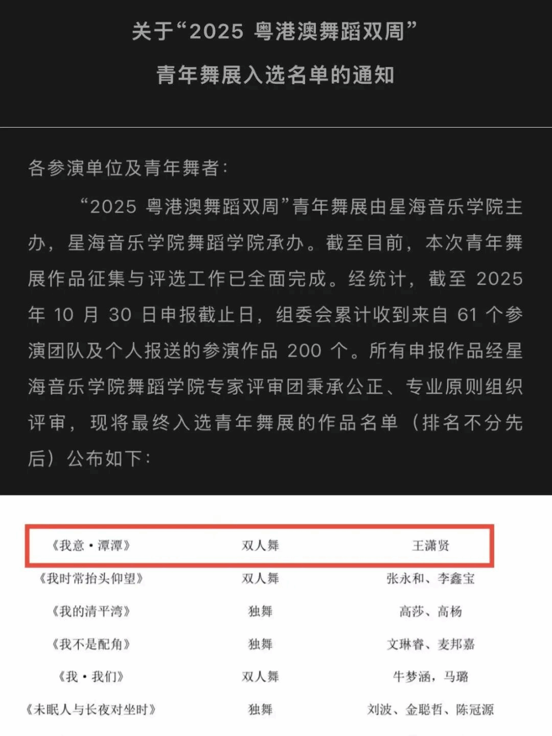 关于“2025粤港澳舞蹈双周”青年舞展入选名单的通知//mp.weixin.qq.com/s/CvE6ZmMpFJsK-yHYSJ7cvQ)