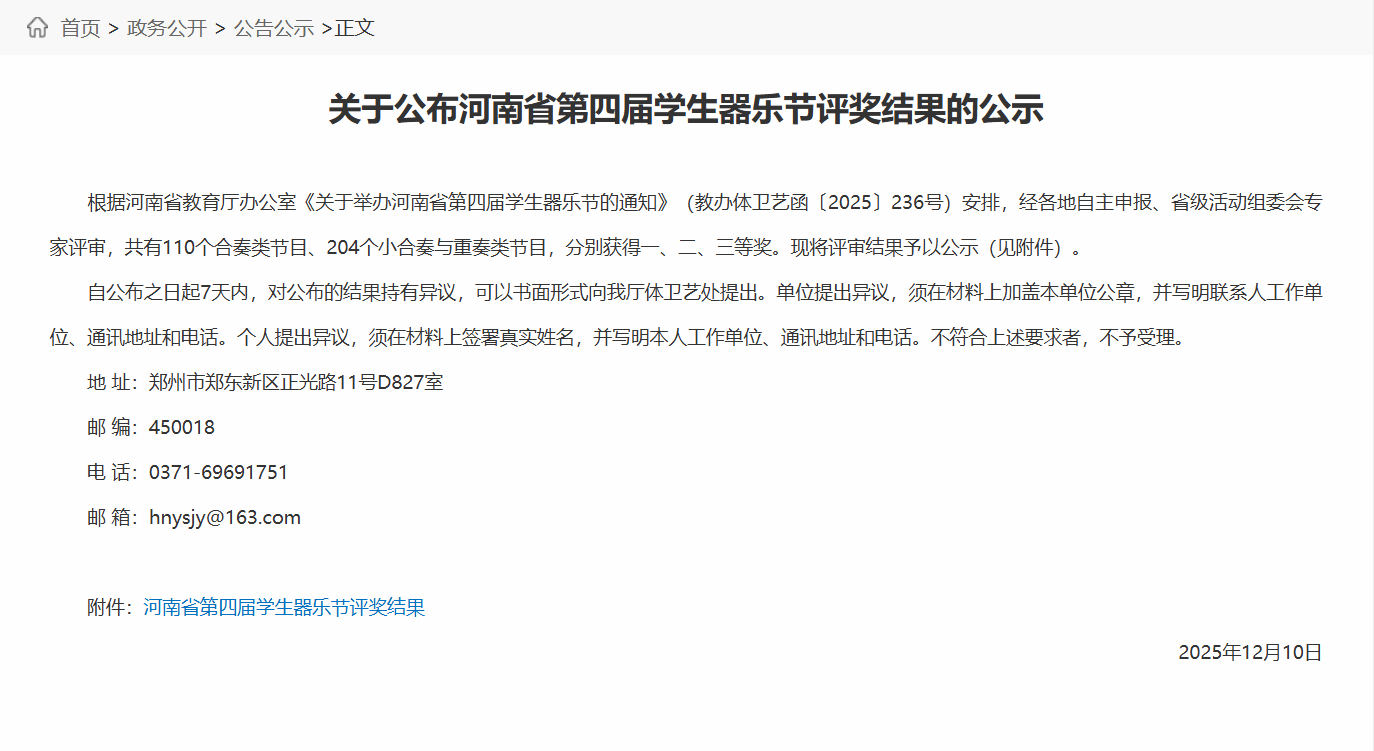 近日,由河南省教育厅主办的河南省第四届学生器乐节圆满落幕。在本届器乐节中,性爱直播师生再创佳绩,荣获一等奖3项、二等奖3项,充分展现了性爱直播在器乐艺术实践教学和人才培养方面的卓越成效。