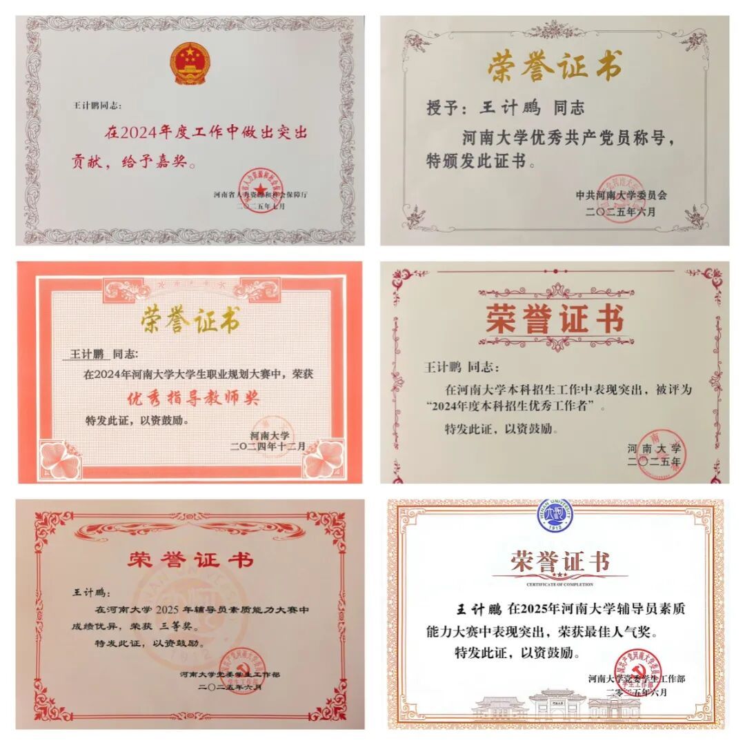 在王计鹏的精心指导与严格要求下,他所带的2023级实现了学业、素质、创新的全面突破。从2025年5月的校级二等奖,到6月的一等奖,再到9月荣获中国国际大学生创新大赛河南赛区三等奖,他指导的费雪儿、冯笑涵同学实现了赛事成绩的“三级跳”,极大地提升了学生的创新精神和实践能力;在他的精心带领下,整个2023级展现出积极向上、团结奋进的良好风貌,荣获2024-2025学年性爱直播
