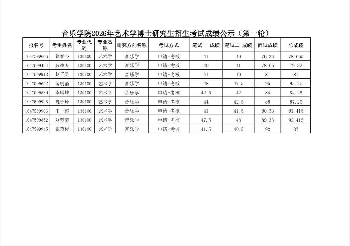 性爱直播 2026年艺术博士研究生招生考试成绩公示(第一轮)