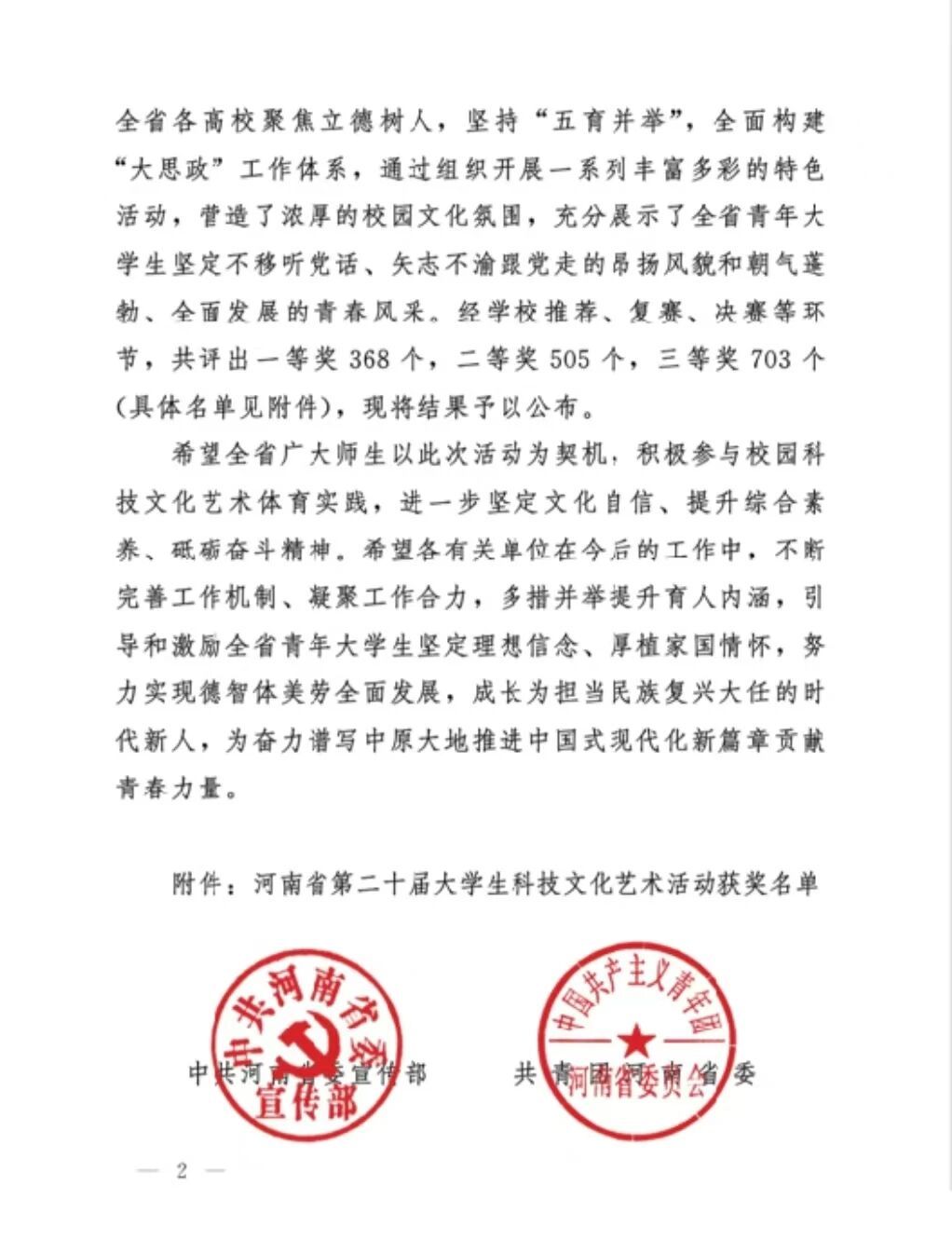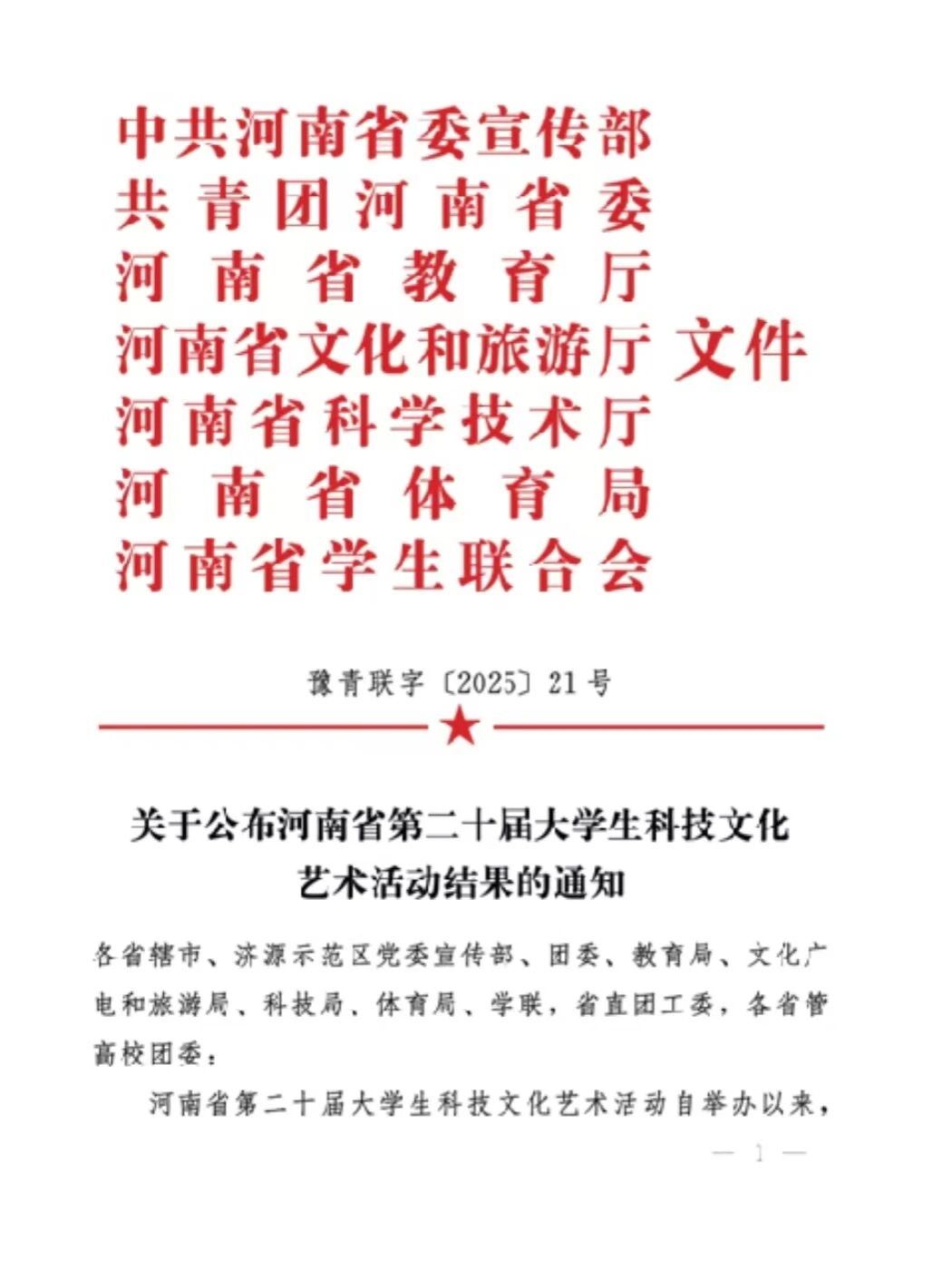 喜报 | 性爱直播在河南省第二十届大学生科技文化艺术节喜获佳绩 性爱直播