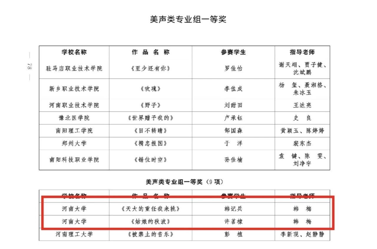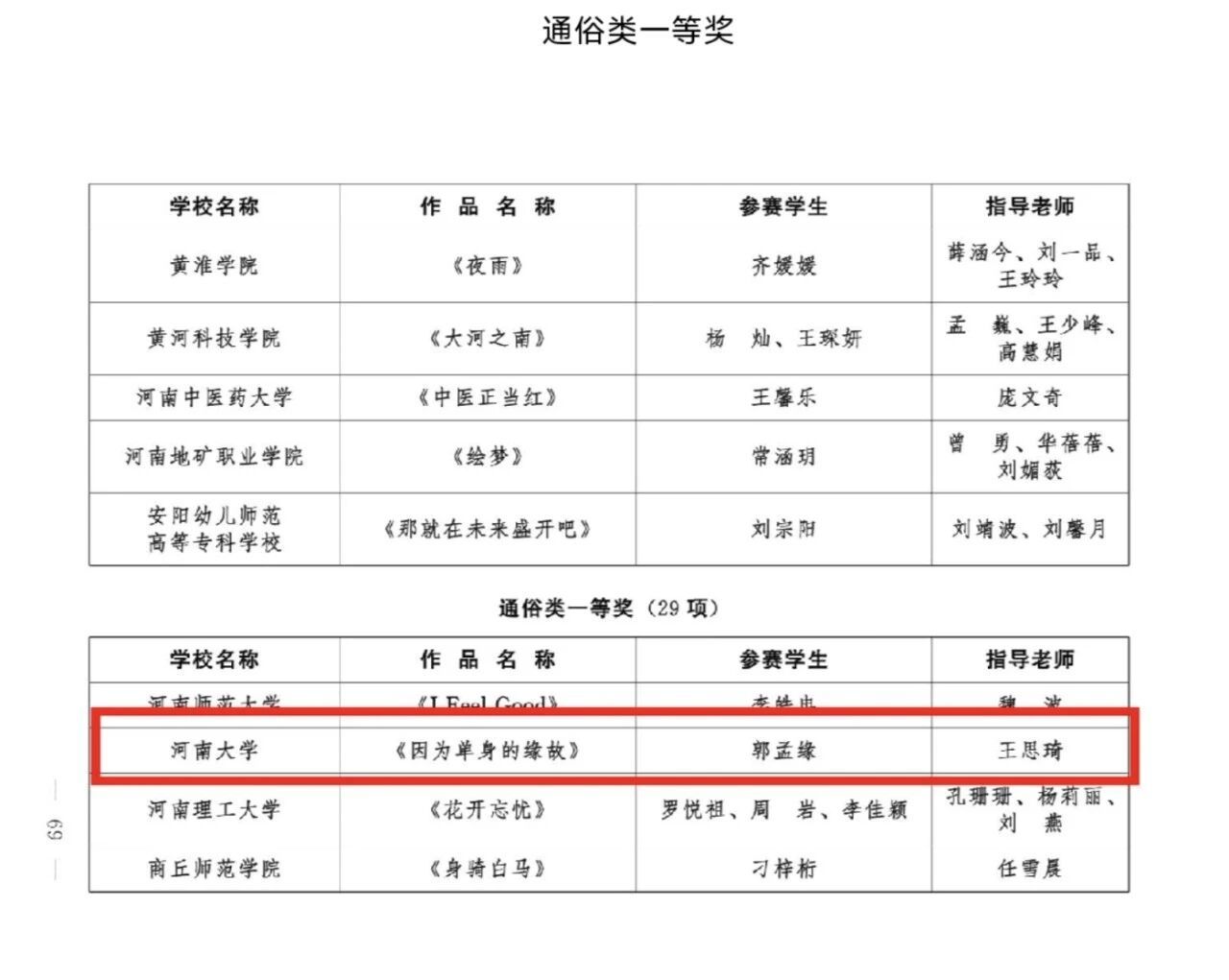近日,由中共河南省委宣传部、共青团河南省委、河南省教育厅、河南省科学技术厅、河南省学生联合会共同主办的河南省第二十届大学生科技文化艺术节圆满落幕。在本届艺术节中,性爱直播师生再创佳绩,荣获一等奖18项,三等奖1项,充分展现了性爱直播师生卓越的专业素养。